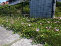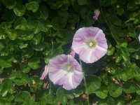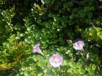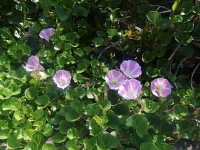 | 多年草 つる性 花期:5月〜6月 生育場所:海浜付近 特徴:薄桃色の花がきれい。葉は円形で基部が左右に張り出し、艶と厚みがある。 名前の由来:海浜に生息するのに適したヒルガオ。 |