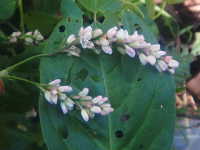 | 1年草 草丈:30cm〜60cm 花期:8月〜10月 生育場所:林縁などやや湿った所 特徴:薄紅色の花がまばらに咲く。托葉鞘は白く、長い毛がある。葉は長卵形で先が尖る。 名前の由来:花が梅花状に開くため。 |