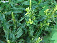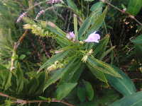 | 多年草 草丈:60cm〜80cm 花期:8月 生育場所:庭、道ばたなど 特徴及び名前の由来:薄紫色の虎の尾のような大きな花穂を付ける。園芸品種が野生化。 |