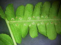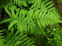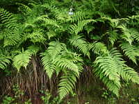 | 夏緑性シダ植物 草丈:50cm〜80cm 繁殖:夏から秋に葉裏に胞子のうが付く 生育場所:林内、林縁など 特徴:2回羽状複葉で、一番下の羽片は下向きになりハの字形。 名前の由来:葉柄が針金のようにピンと立つため「ハリガネ」で、葉の形がワラビに似ているため。 |