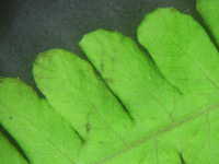 (比較:近縁のヤワラシダは ふちまで達していない) |