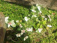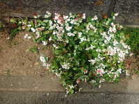 特徴:常緑のつる性植物で、葉は先の尖った卵形。葉に白とピンクの斑が入る。園芸種が野生化。