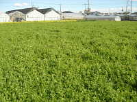 特徴:カラスノエンドウによく似た雑草抑制+緑肥作物。アレロパシー作用(他の植物の生育を抑制する物質を放出)により雑草の発生を抑制する。マメ科で根粒がつくため緑肥作物としても有効。なお、草が枯れる7月までの間は雑草化することがある。