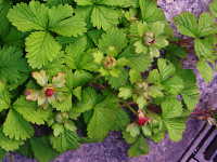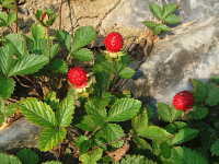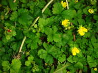 | 多年草 草丈:つる性 花期:5月〜6月 生育場所:田畑の周辺など 特徴:黄色い花と赤いイチゴに似た果実(無毒)。 名前の由来:ヘビが食べるイチゴという意味。 |