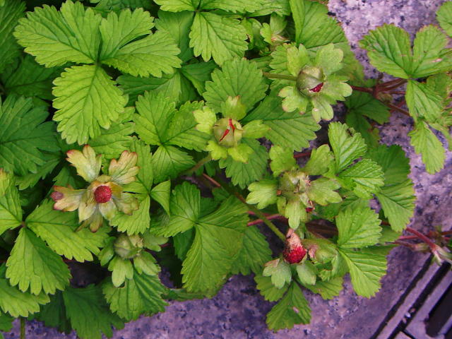 ヘビイチゴ 赤い果実が次第にふくらむ(5月中旬)