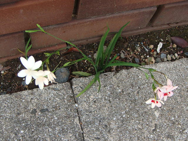 ヒメヒオウギアヤメ 白い花と赤いブロッチのある花