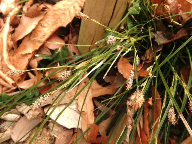 ヒメカンスゲ 雄小穂は褐色で白い花糸が目立つ(3月下旬)