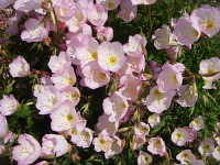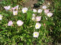 特徴及び名前の由来:薄桃色のきれいな花で、ツキミソウと異なり明け方に開花し、日中もしぼまない。