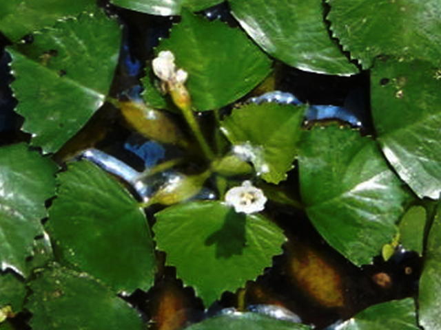 ヒシ 葉柄の中央部は膨れて浮き袋になる