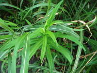 特徴:葉が大きく、上位葉から下位葉まで切れ込みがない。薄黄色の花が咲く。
