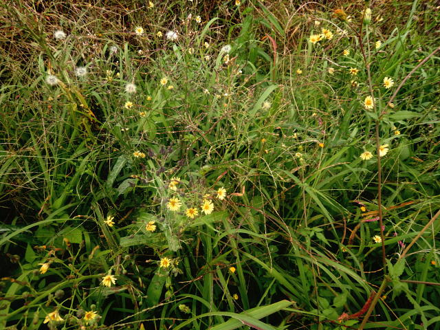 ホソバアキノノゲシ 水田脇の群落(10月下旬)