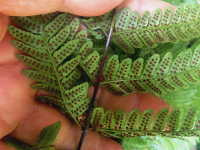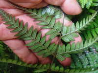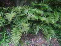 | 常緑性シダ植物 草丈:50cm〜130cm 繁殖:春から夏に葉裏に胞子のうが付く 生育場所:林下など 特徴:葉は3回羽状複葉で、革質で、表面が金属光沢を放つ。 |