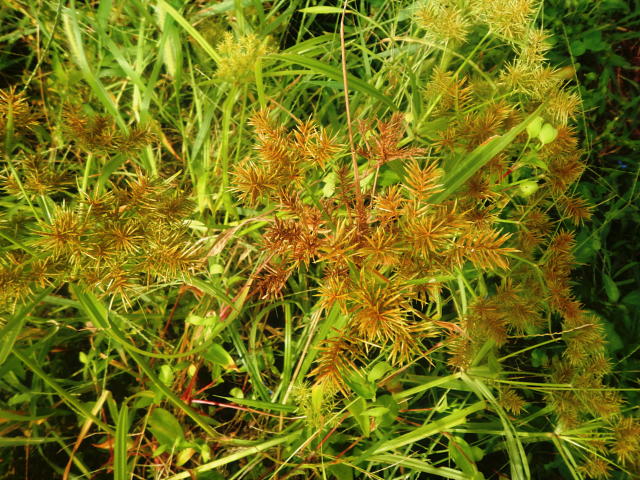 ホソミキンガヤツリ 黄金色の花序(9月中旬)