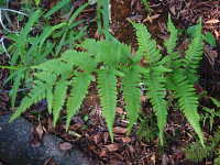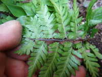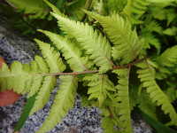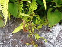 | 多年草 草丈:30cm〜60cm 生育場所:日陰など 特徴:葉が柔らかいシダ類で、葉の柄は赤紫色。 名前の由来:ワラビに似るが、食用にならず価値がないため「イヌ」。 |