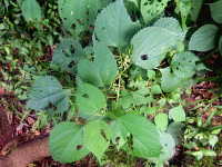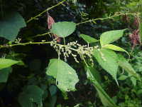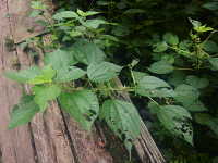 | 多年草 草丈:100cm〜150cm 花期:8月〜10月 生育場所:林際の道ばたなどでやや湿った場所 特徴:大型雑草で、葉は鋸歯がある広卵形で先端が尖る。葉裏は綿毛があって白い。枝の上部に雌花序、下部に雄花序をつけ、風により受粉を行う。 名前の由来:かつては、この植物のカラ(茎)を蒸して繊維を取り出し、布を作ったため。 |