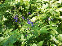 | 多年草 草丈:80cm〜100cm 花期:9月〜10月 生育場所:林縁など 特徴:青紫色のやや大型の花で、雄しべと雌しべが弓なりに長く突き出る。 名前の由来:特徴的な花形が、空を飛ぶ |