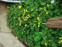 特徴:心臓型の小葉が3枚集まって複葉となる。黄色い花が目立つが、日が照らないと開かない