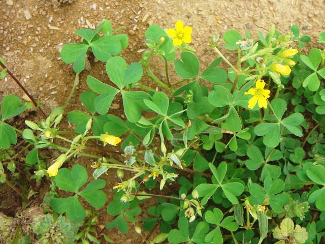カタバミ 一部に閉じた葉が見られる