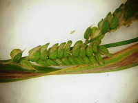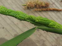特徴:花枝に緑色の数の子のような花序が密生する。
