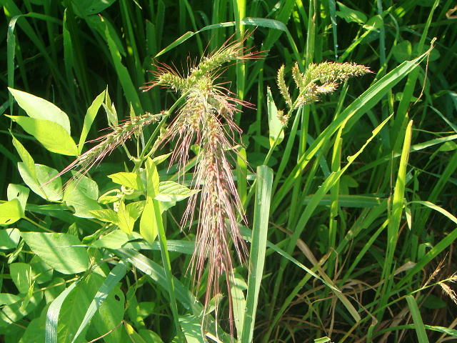 ケイヌビエ(左)とタイヌビエ(右)の花穂