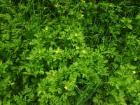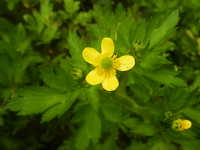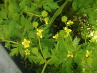 | 多年草 草丈:25cm〜50cm 花期:4月〜7月 生育場所:水田の畦畔など 特徴:花は黄色く、果実は緑色で金平糖の形。小葉には不揃いな鋸歯がある。 名前の由来:葉がボタンに似ている。キツネの意味は不明。葉や茎に毛が多いため「ケ」。 |