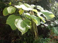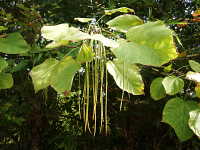 特徴:葉は5角形。長さ30cmになる細長い果実をつける。花は薄黄色。