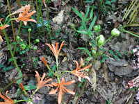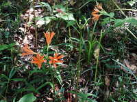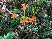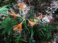 | 多年草 草丈:30cm〜50cm 花期:8月上旬 生育場所:山野など 特徴:葉がない状態で花茎を伸ばし、特徴のある橙色の花を咲かせる。 名前の由来:細い葉がカミソリに似ており、花の色がキツネを連想させるため。 参考:早春に葉が伸びて、初夏に枯れるという珍しい性質を持つ。夏に花蕾が伸び、美しい花を咲かせる。 |