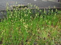 | 1年草 草丈:10cm〜50cm 花期:4月 生育場所:道ばた、空き地など 特徴及び名前の由来:小判型の小穂がまばらに付く。 |