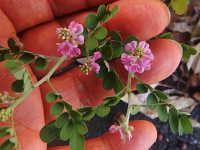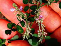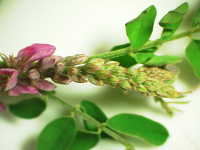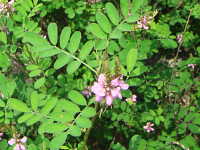 | 落葉小低木 高さ:1m 花期:7月 生育場所:草原、河川敷など 特徴:桃色の円錐花序がきれい。葉は羽状複葉。 名前の由来:この植物に馬のたずなをつないだため「 |