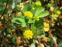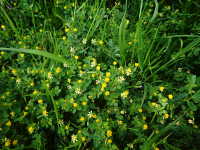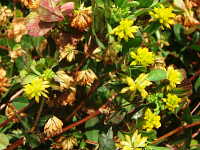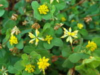 | 1年草 草丈:20cm〜40cm 花期:4月〜6月 生育場所:庭、芝生など 特徴:シロツメクサに似た形の黄色い花。 名前の由来:シロツメクサに似た形の花で、一つ一つの花は米粒のように小さい。 |