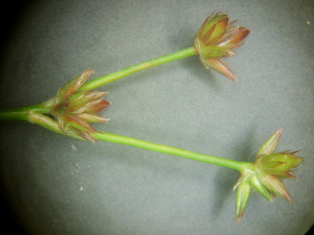 コウガイゼキショウ 赤味を帯びた緑色の頭花