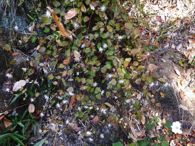 コウヤボウキ 石垣に生える花盛りの株(11月上旬)