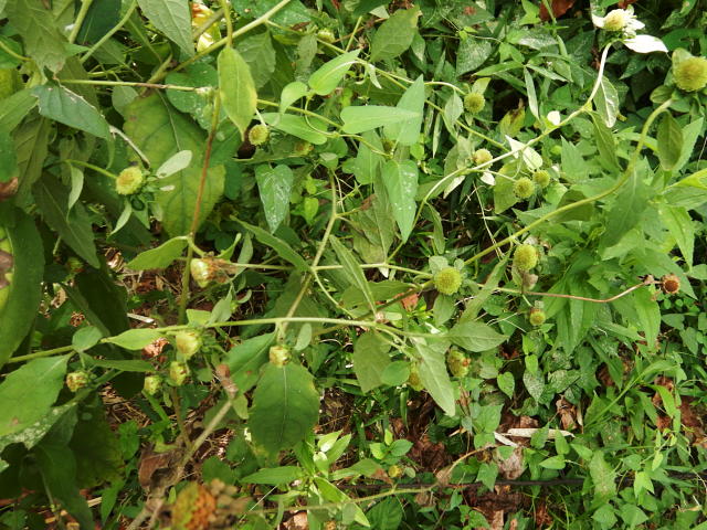 コヤブタバコ 株全体を下から持ち上げると頭花が見える