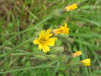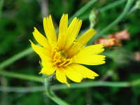 特徴:舌状花のみからなる黄色い花。茎は上部で枝分かれし、赤紫色の剛毛がある。