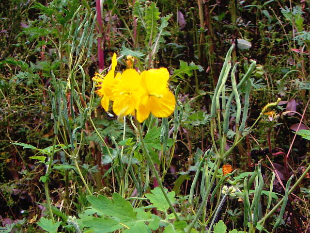 クサノオウ 果実は細長く(30〜40mm)上を向く