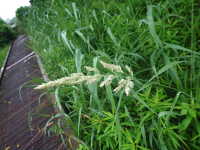 | 多年草 草丈:80cm〜180cm 花期:5月〜7月 生育場所:、休耕水田など 特徴:花序が円錐形で白い。茎や葉はヨシに似ている。 名前の由来:ヨシに似ているが草っぽいため。 |