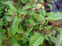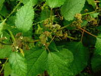 | 1年草 草丈:40cm〜60cm 花期:9月〜10月 生育場所:道ばたなど 特徴:クワに似た形の葉と緑色又は紫色の球状花序。 名前の由来:葉の形がクワに似ているため。 |