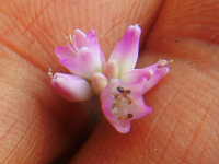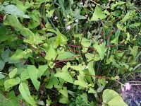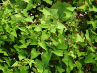 特徴:葉が三角形で、茎や葉柄にトゲがあり、イシミカワとよく似ている。枝先に濃桃色の花を3〜10個つけることが、わかりやすい違い。(イシミカワの花は緑色)