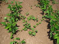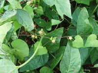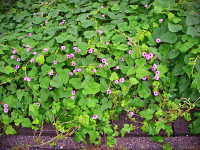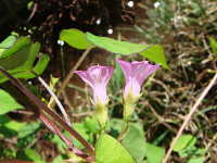| 1年草 つる性植物 花期:9月〜10月 生育場所:道ばた、ダイズ畑など 特徴:アサガオ型の薄桃色で中心の色が濃い小花を付ける。この花はホシアサガオに似ているが、花柄が葉柄より短く、花数が少ない。 名前の由来:アサガオに似て、花が小さいため「マメ」。 参考:除草剤が効きにくいため、ダイズ畑における難防除雑草となっている。 |