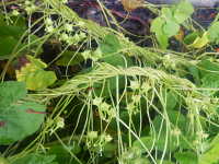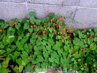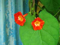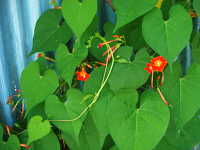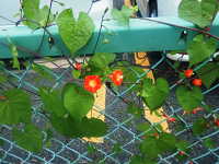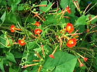 | 1年草 つる性植物 花期:8月〜9月 生育場所:道ばたなど 特徴:朱色の美しい花。園芸品種が野生化。 |