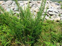 | 多年草 草丈:80cm〜100cm 花期:9月〜10月 生育場所:道ばた、草地、河原など 特徴:茎は直立し、紫色の斑紋がある白い花を付ける。 名前の由来:占いの道具に使われる |