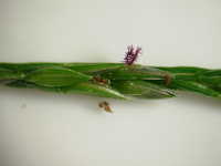 特徴:株元の茎はやや赤い。オヒシバに似るが、花穂の幅が狭い。