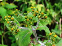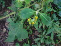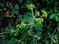 特徴:葉は卵形から卵状三角形。花は円錐花序で多数の小さい黄色い花をつける。