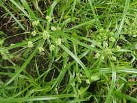 | 多年草 草丈:40cm〜60cm 花期:6月〜9月 生育場所:道ばた、草地、湿地など 特徴:7〜10本の花序枝の先に小穂が球状に集まる。 名前の由来:第二次世界大戦後にアメリカから沖縄に侵入し、その後関東地方まで広がったカヤツリグサであるため。 |