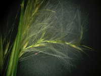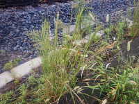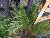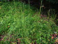 特徴:多数の茎が株元から直立し、先端の包葉から白い総(花序)が抜け出す。
