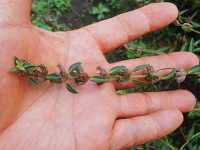 特徴:くさび型の小さい葉と花穂状に多数付く濃桃色の花。