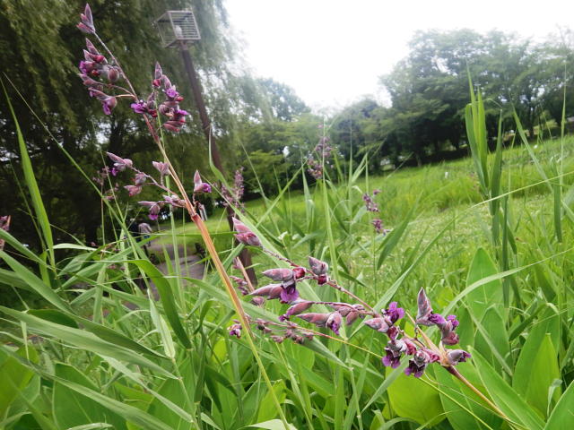 ミズカンナ 紫色の花が順々に開く
