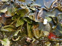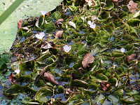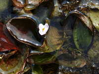 | 1年草 沈水植物 花期:8月〜10月 生育場所:湖沼、ため池、水路、水田など 特徴:長楕円形の葉が根生し、通常は水中に生える。花は花弁3枚で白い。 名前の由来:水中に生え、葉の形や根生であることがオオバコに似ているため。 |