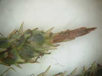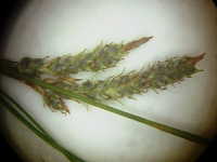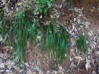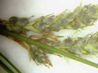 | 多年草 草丈:50cm〜70cm 花期:9月〜10月 生育場所:林縁など 特徴:葉は深緑色で硬く、株元から多数出て、大型の株になる。茎に小穂を10個程度つける。 名前の由来:葉が硬く、菜が切れそうであるため「ナキリ」。「スゲ」は属名。 |
