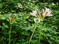 | 多年草 草丈:50cm〜60cm 花期:8月 生育場所:山野や道ばたの木陰など 特徴:葉がない状態で花茎を伸ばし、桃色の花を咲かせる。 名前の由来:葉がスイセンに似て、夏に花を咲かせるため。 参考:春に葉が伸びて初夏に枯れ、その後花蕾が伸び、美しい花を咲かせる。 |